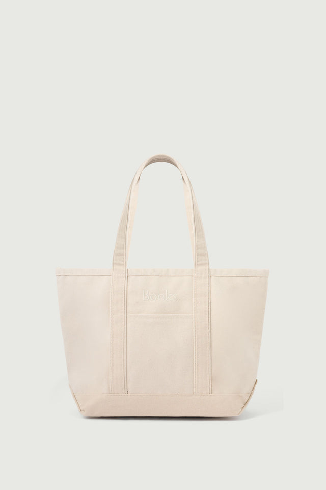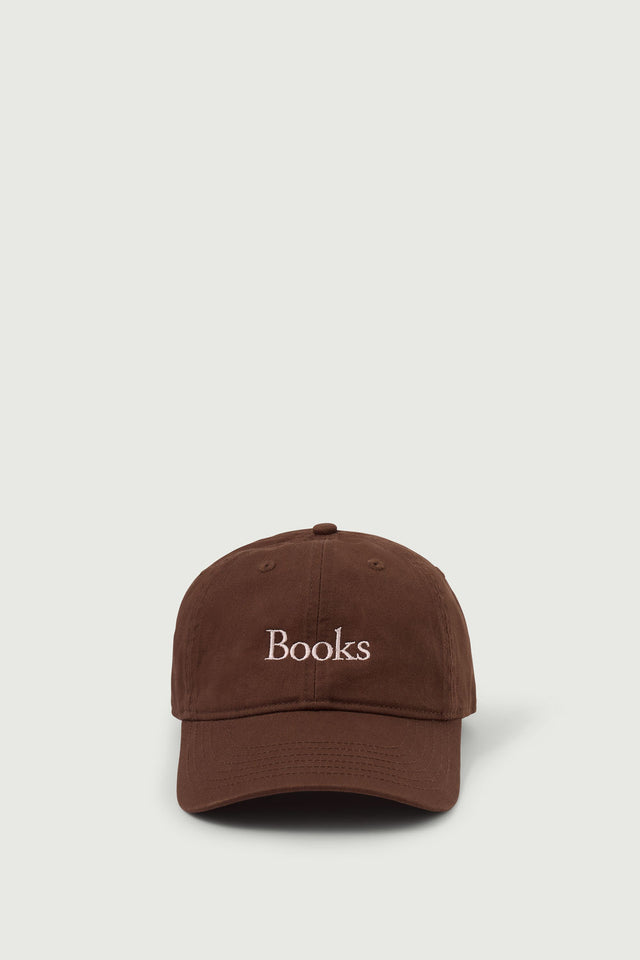 A series of canvas tote bags and caps embroidered with the word "Books" in exclusive colors.