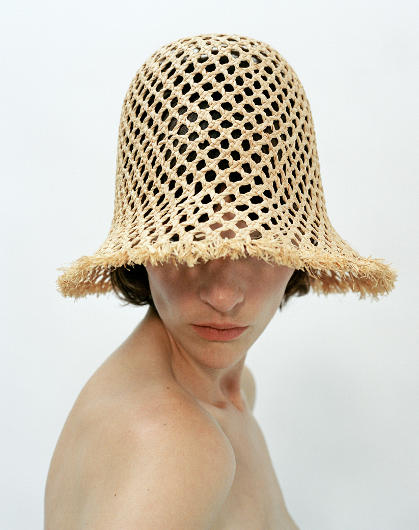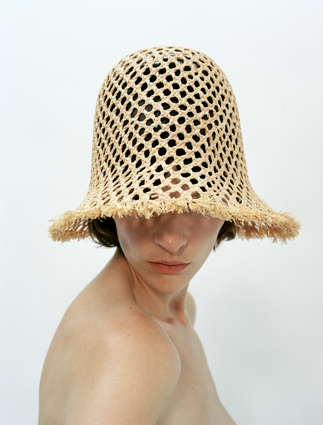 Sombrero de paja calado, extraligero, de capelina color crudo: cada sombrero de Soeur marca el punto final de una silueta, además de ser un aliado bajo el sol.