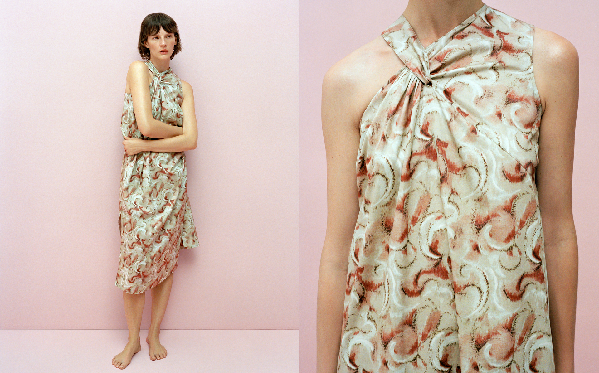 Una bonita asimetría que deja la espalda al aire, un juego de dibujos y tonos pastel que atraen las miradas: el vestido de un verano soñado.