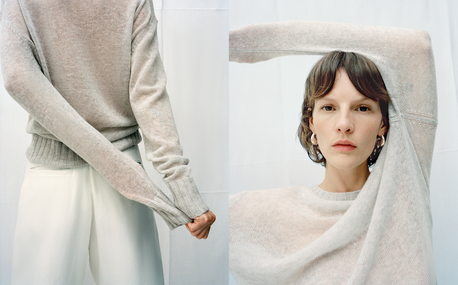 Sucesión de capas a modo distintivo: entre tejidos de punto de diversos grosores y colores ácidos, la armonía de los tonos pastel acompaña la paleta de materias.