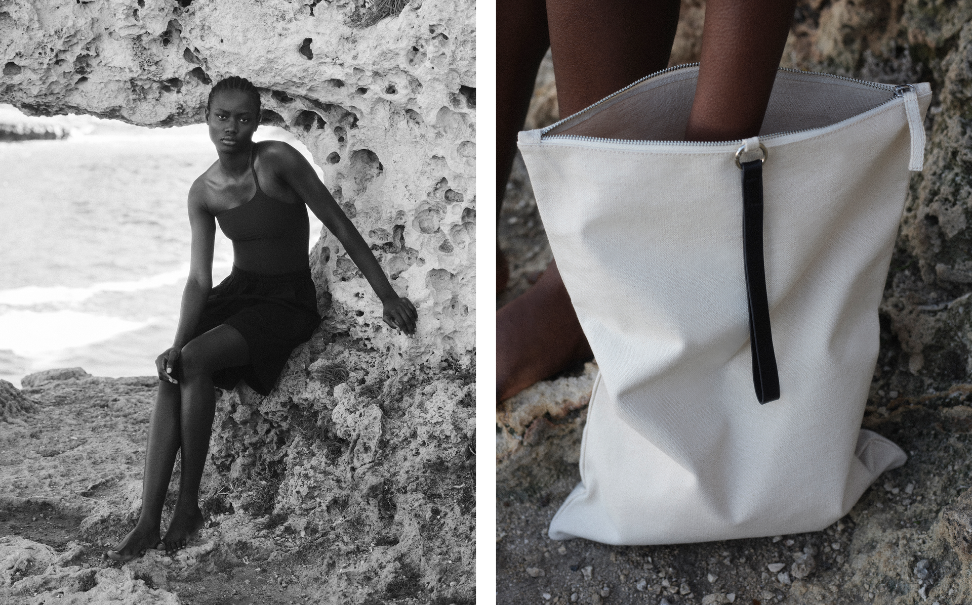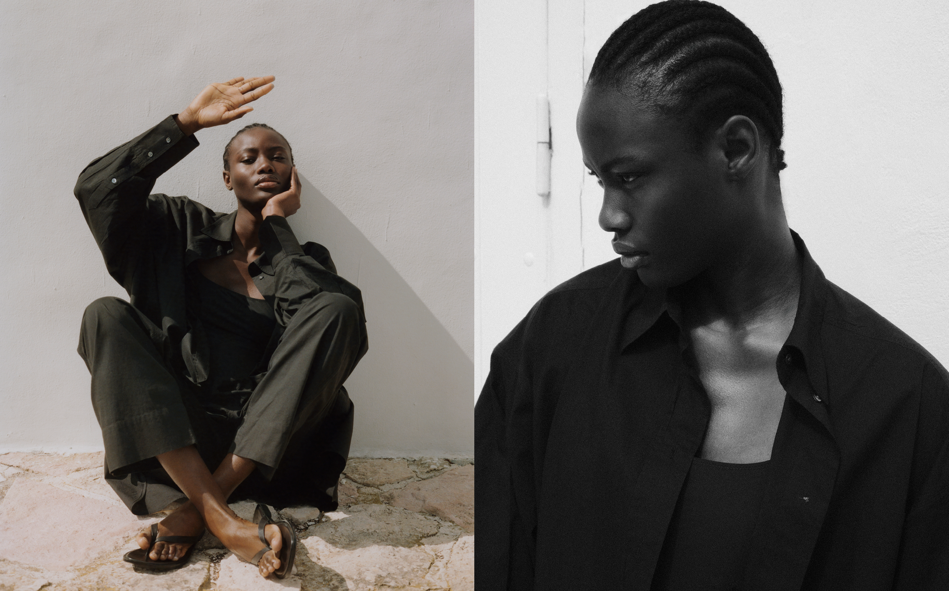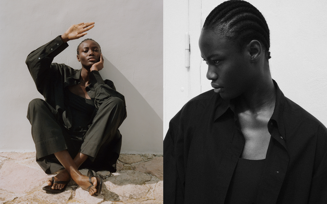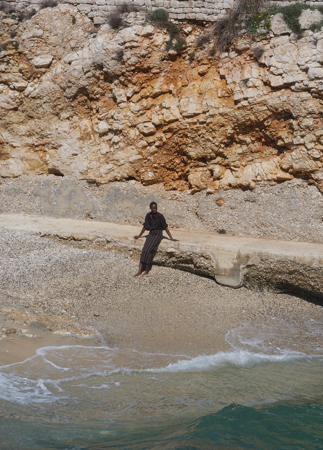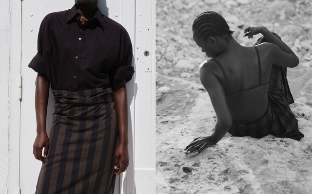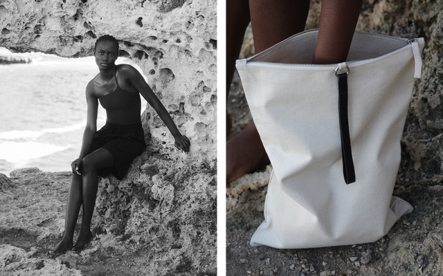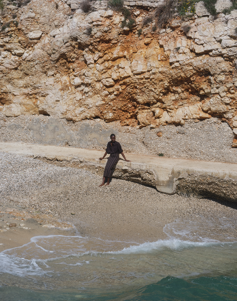 La cápsula presenta tres trajes de baño de líneas limpias y un vestuario ligero y gráfico, dictado por el sol y la elegancia sin esfuerzo.
