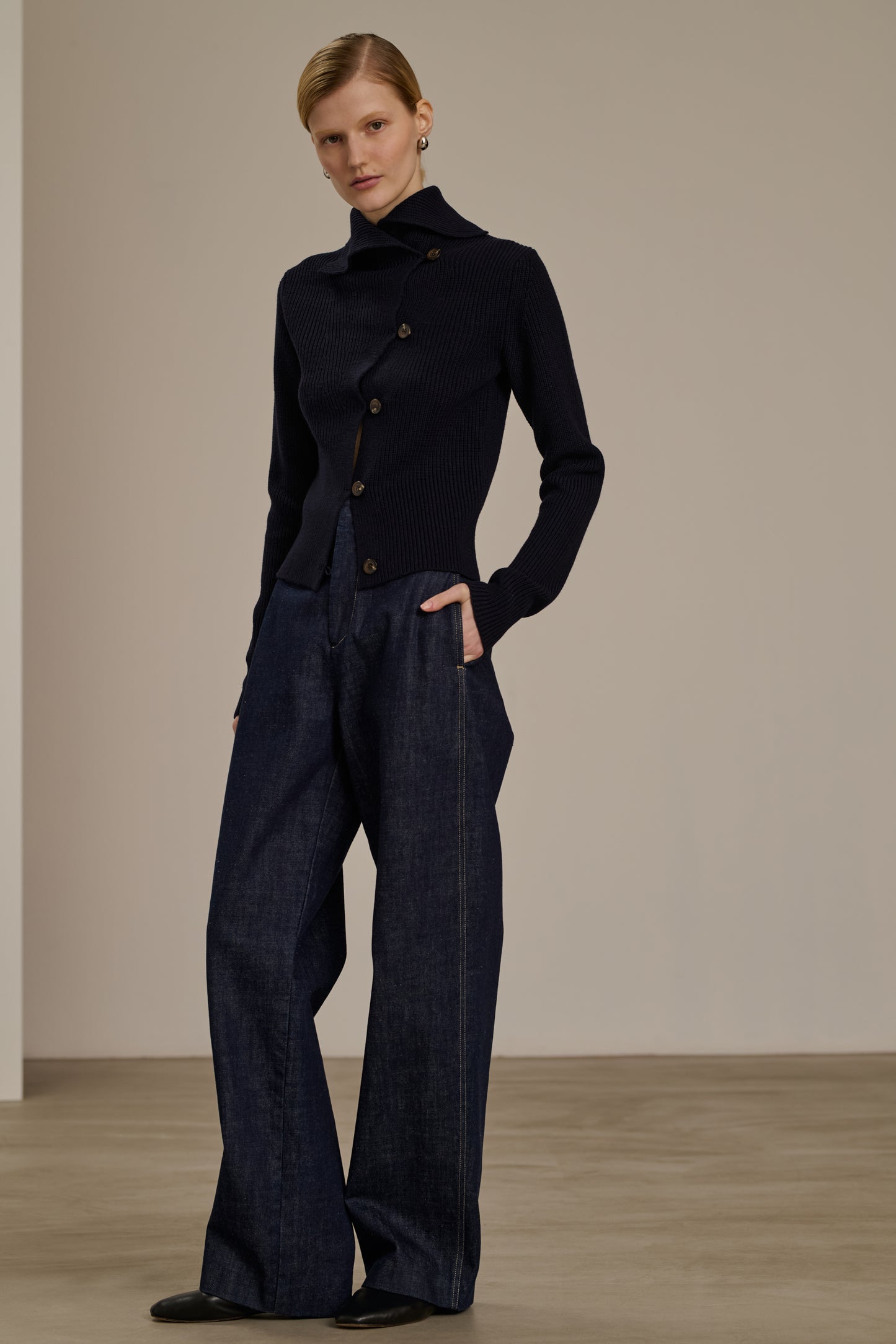 WIMY es un cárdigan ajustado en punto acanalado. Numerosos botones permiten un cuello modulable, para llevarlo cerrado o abierto. Se puede llevar como un cárdigan directo sobre la piel o en superposición como una chaqueta fina. Forma parte de nuestra línea bordada del monograma "S". Esta versión es de lana merino fina y cálida.