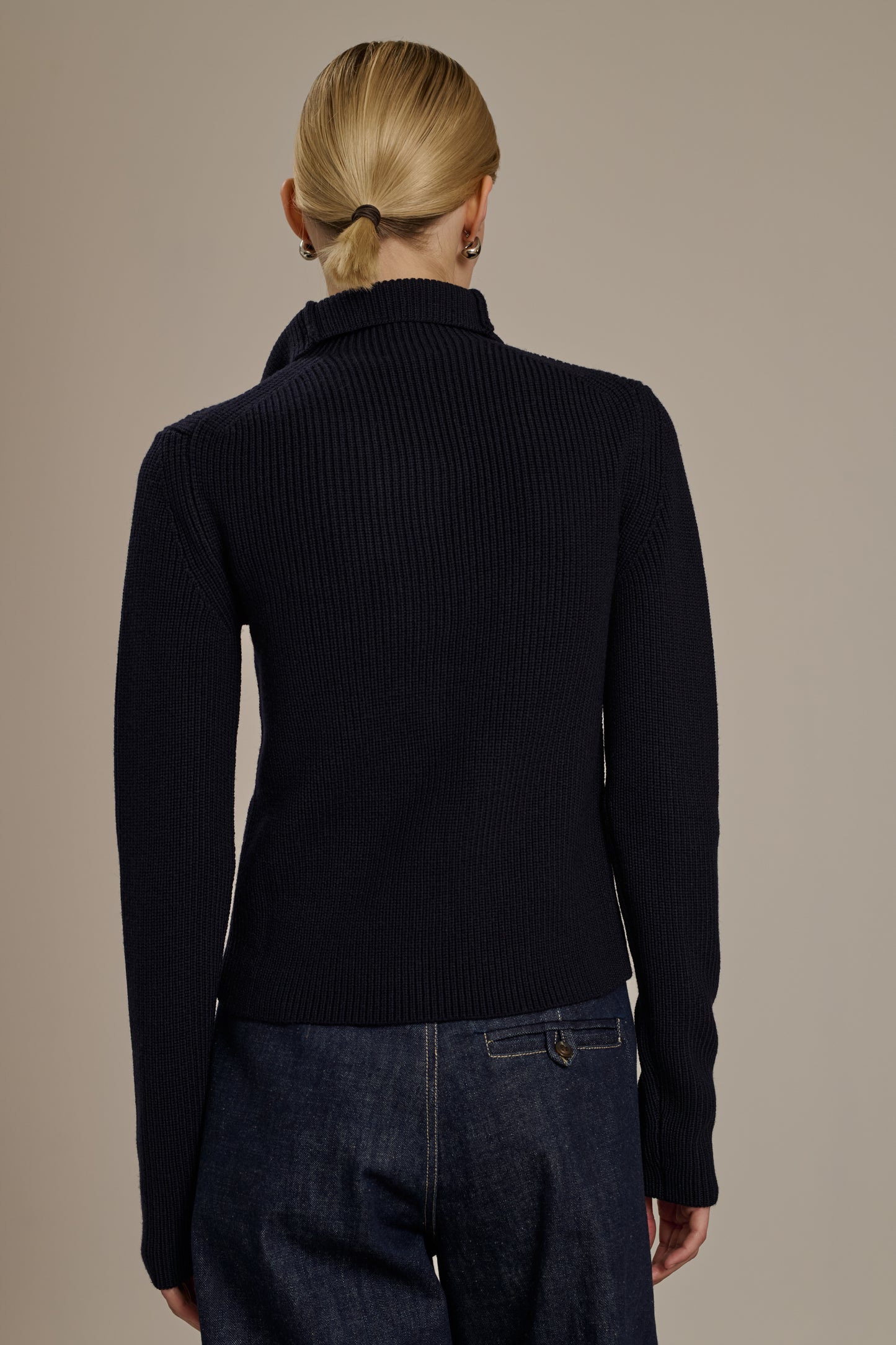 Chaqueta entallada de punto de canalé, lana merina azul marino