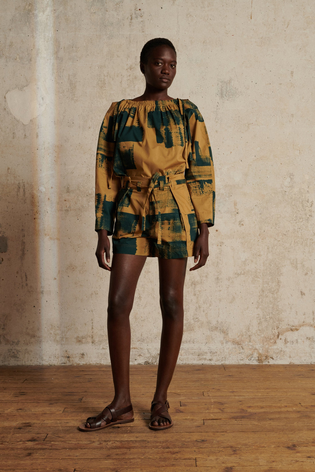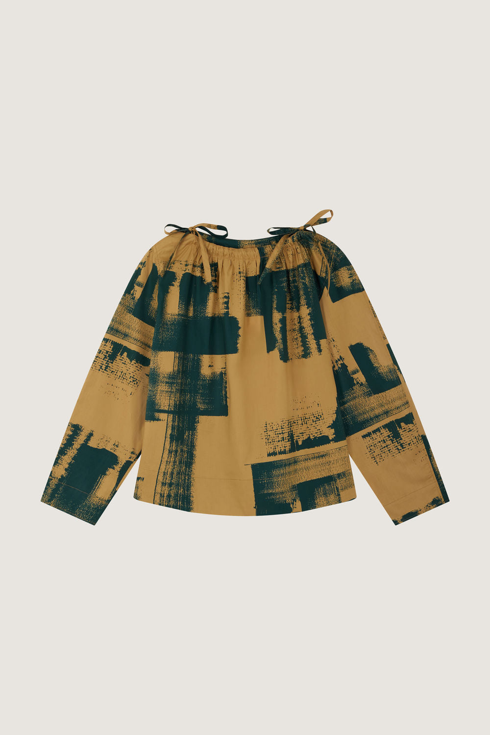 camisa uki Blusa de popelín de algodón estampada en azul y beige
