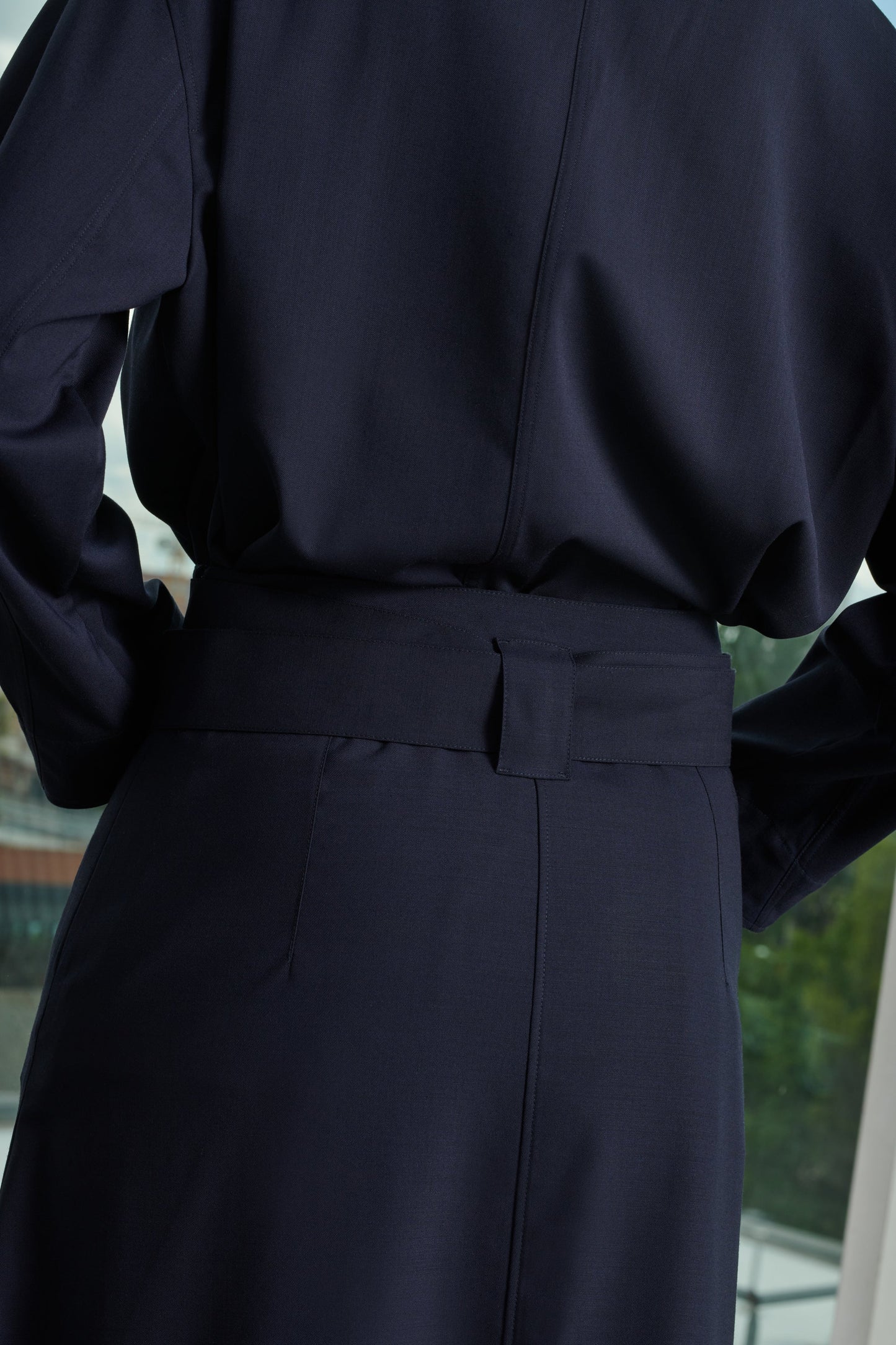 Falda de gabardina de lana ligera azul marino